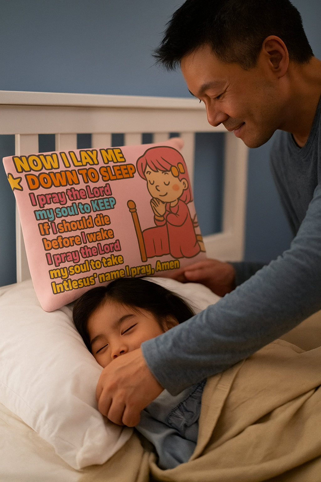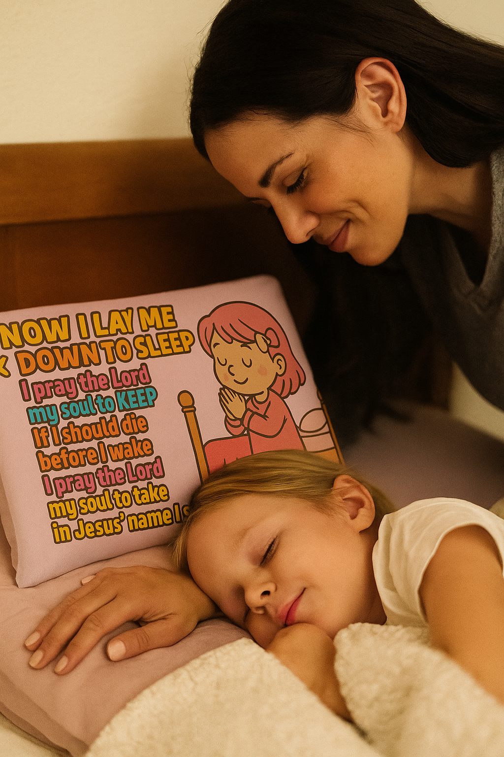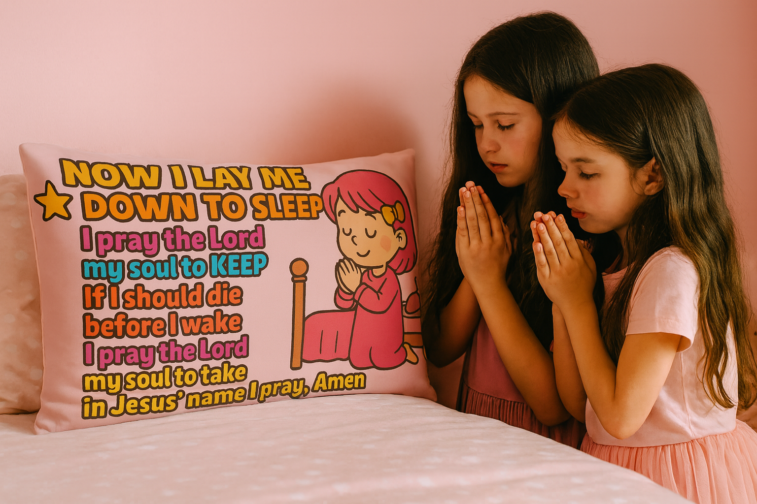 Wrap your little one in the comfort of faith and love every night with our “Now I Lay Me Down to Sleep” Prayer Pillow. Designed to fill bedtime with peace, this beautifully printed pillowcase features the cherished children’s prayer alongside a sweet, illustrated girl kneeling in devotion.
