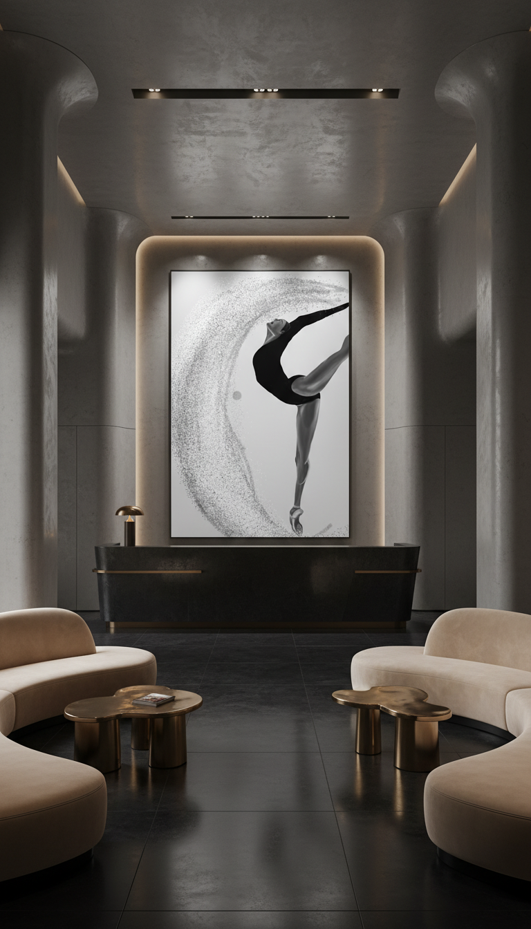 Eclipse en Pointe is part of the Black & White Luxury Collection—a curated selection of monochrome works celebrating form, restraint, and timeless elegance.