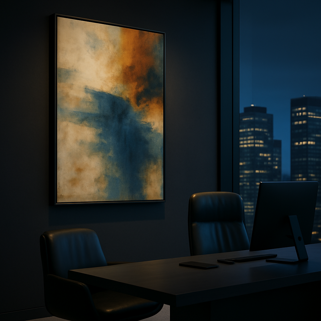 This piece was created for spaces where serenity must feel intentional: luxury staterooms, boutique hotel lounges, penthouse living areas, and ocean-adjacent residences. Its palette is deliberately restrained—warm without excess, cool without distance—allowing it to harmonize with cream leathers, limestone surfaces, linen drapery, and natural light.