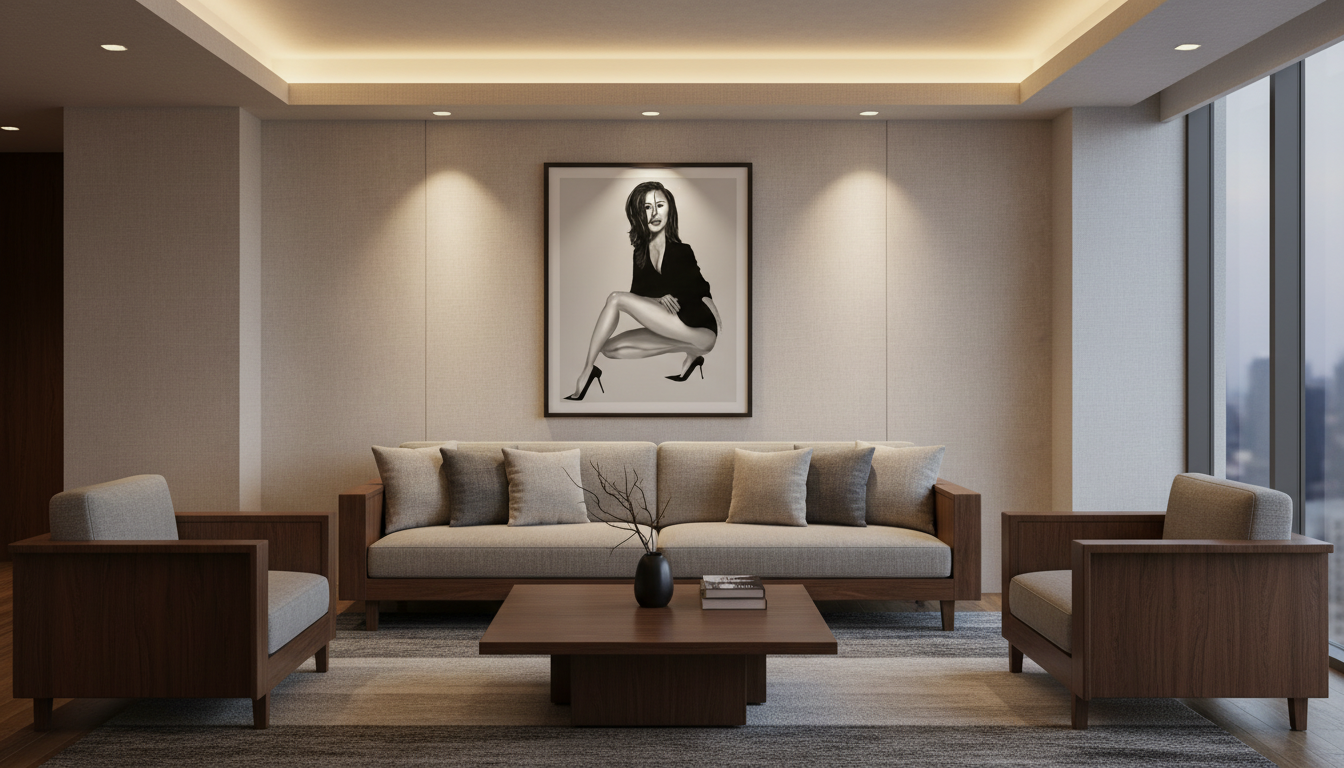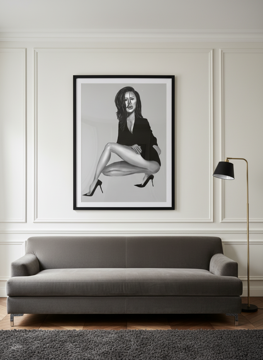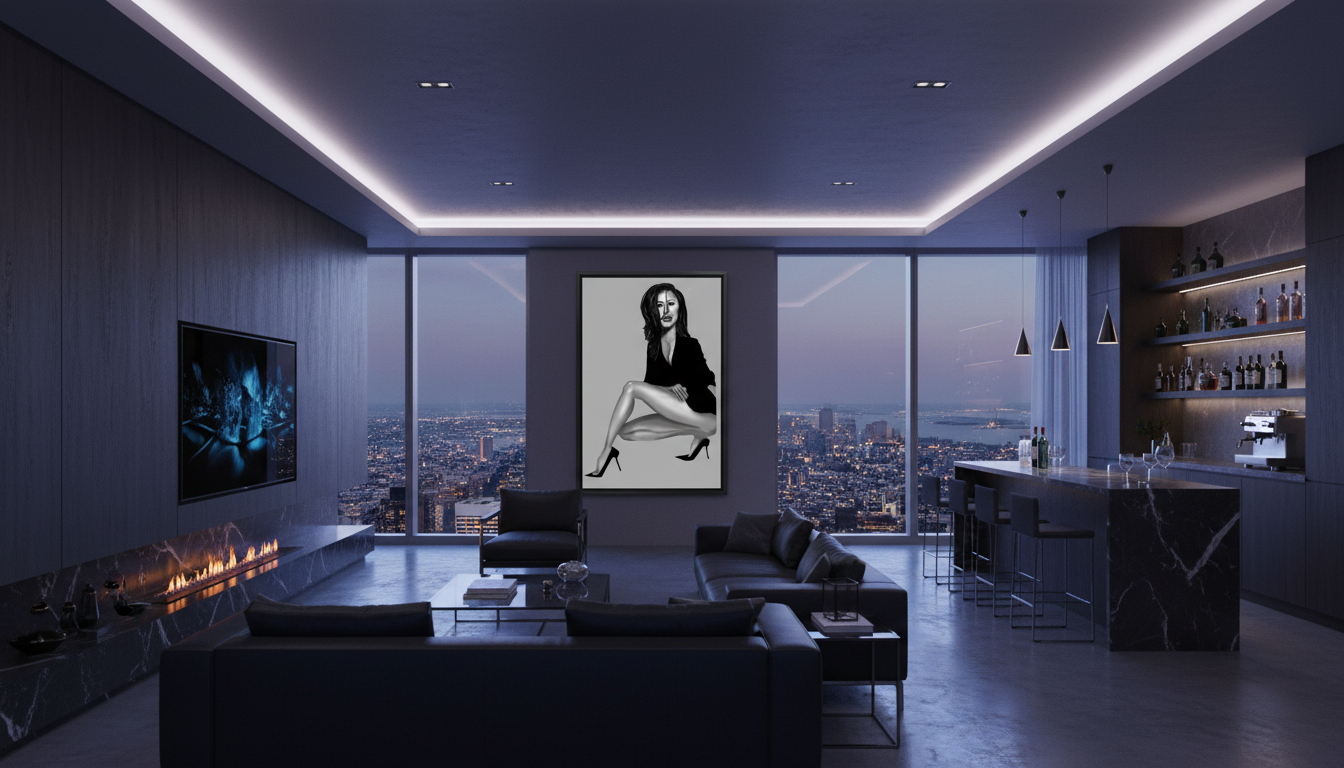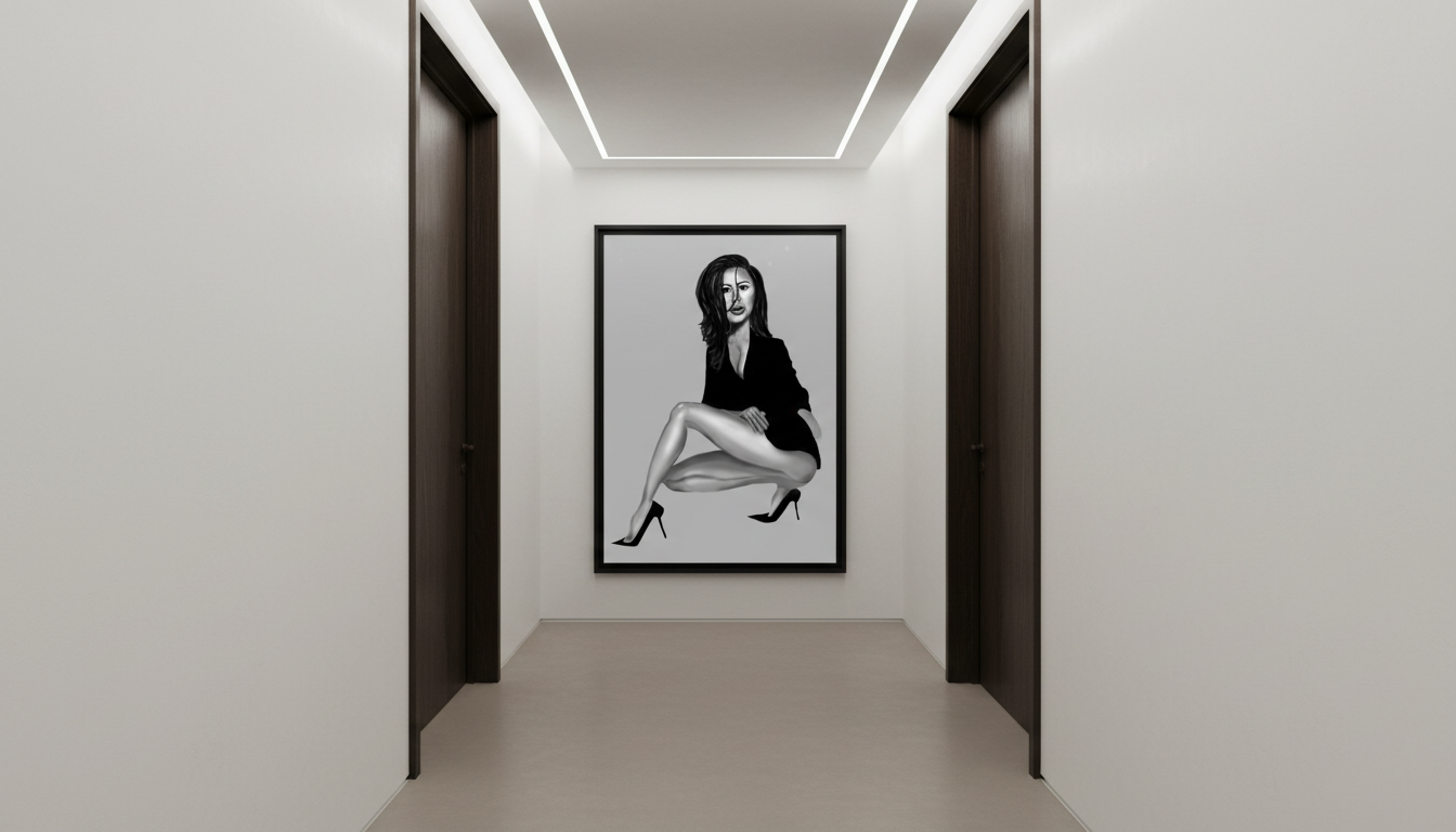 This artwork belongs in spaces where decisions are made quietly—executive offices, penthouse dressing rooms, private corridors, luxury hotel suites, and collector interiors that understand presence over performance.