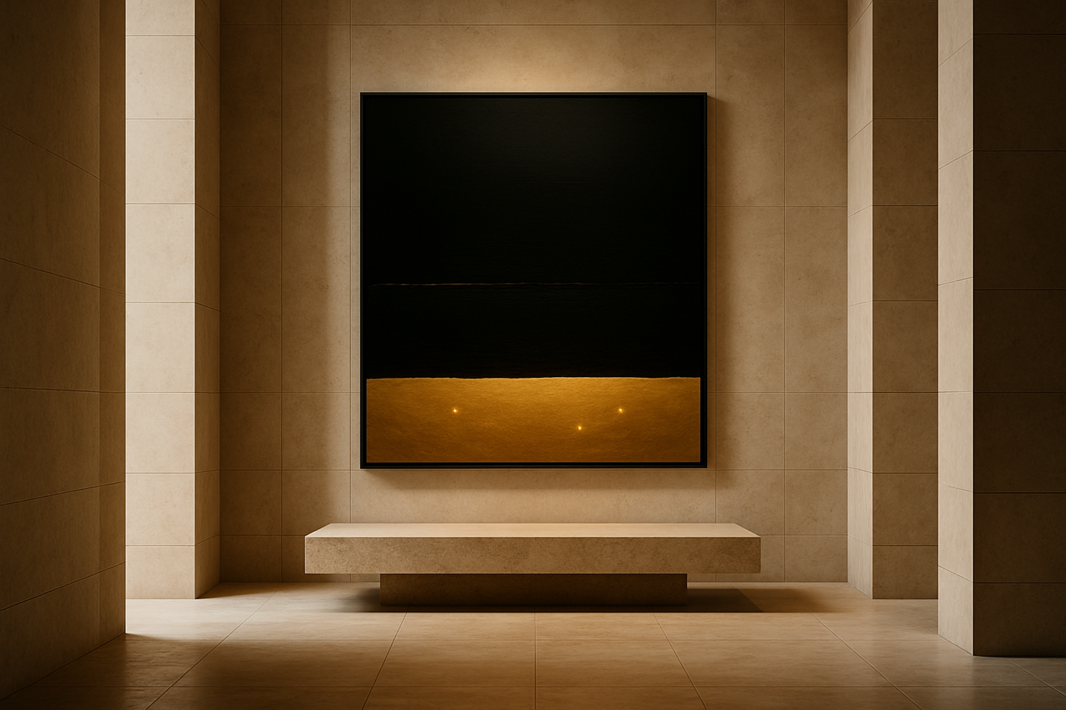The upper field absorbs light, grounding the space in authority.