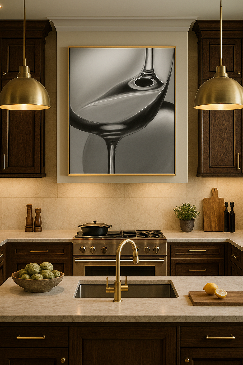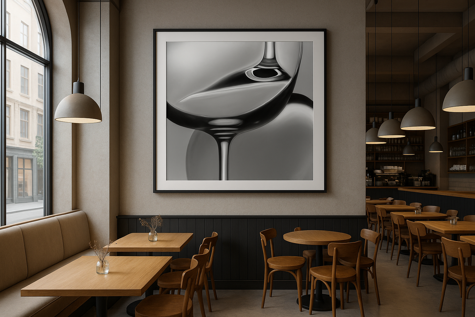 Minimalist abstracts maintain enduring appeal in luxury environments. This piece is designed for wine rooms, private dining spaces, boutique hotels, and refined residential interiors.