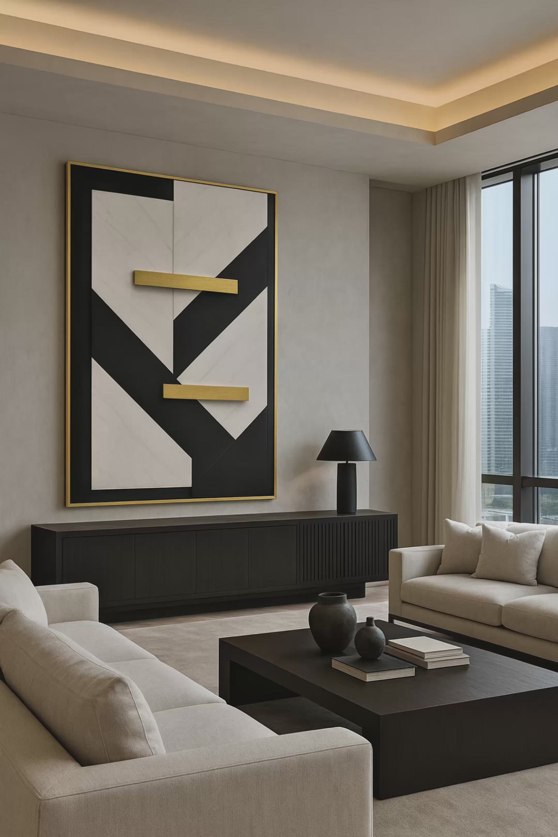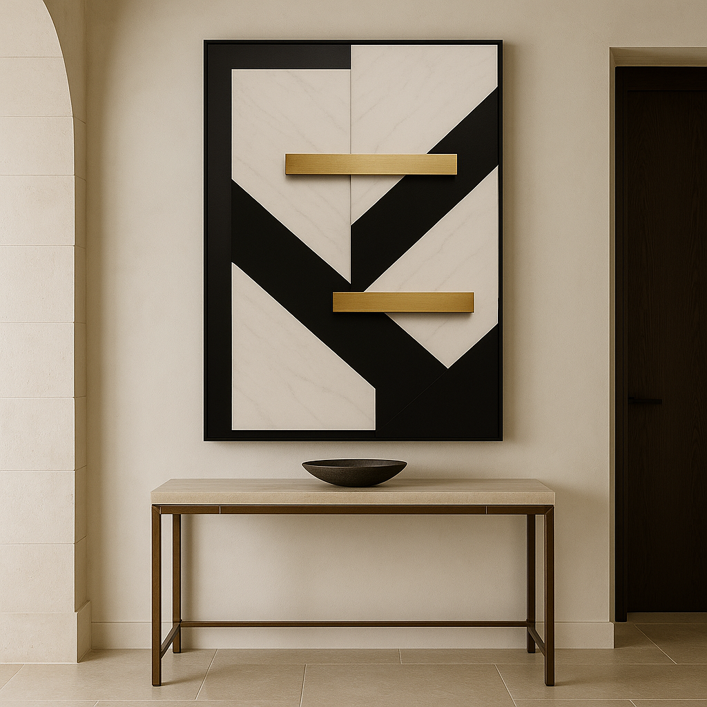 Its flowing gold forms echo molten movement, ancient earth, and the calm force of energy shifting upward. In grand rooms, the artwork feels almost alive—responding to light, shadow, and silence with a presence that is both grounding and transcendent.