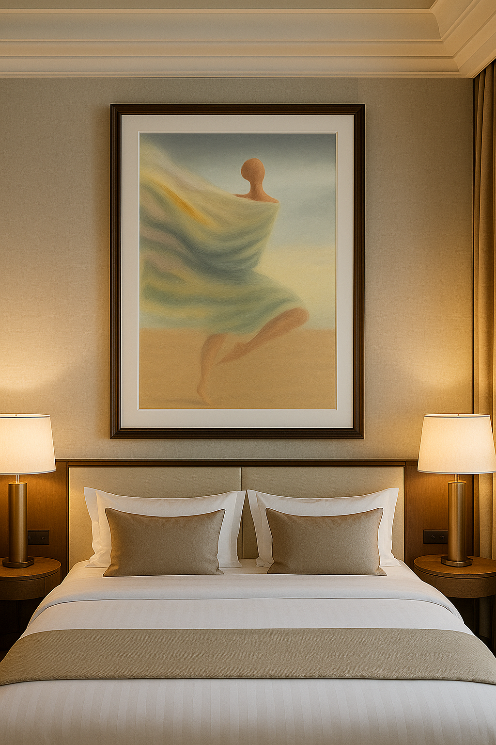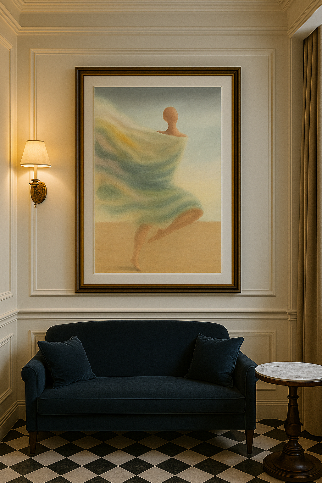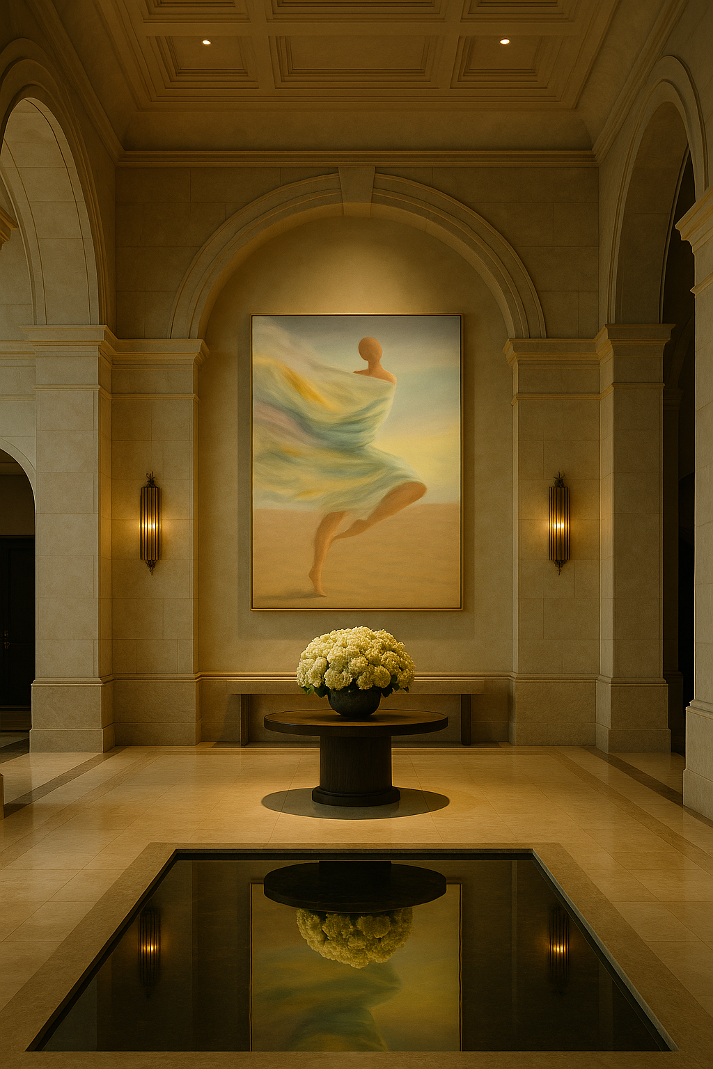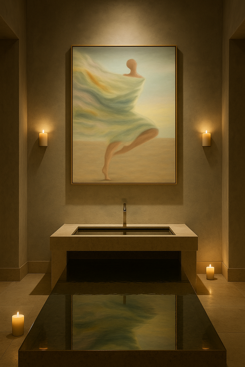This artwork belongs in spaces designed for pause: luxury spa corridors, boutique hotel suites, private meditation salons, and serene residential galleries where calm is intentional and emotion is curated.