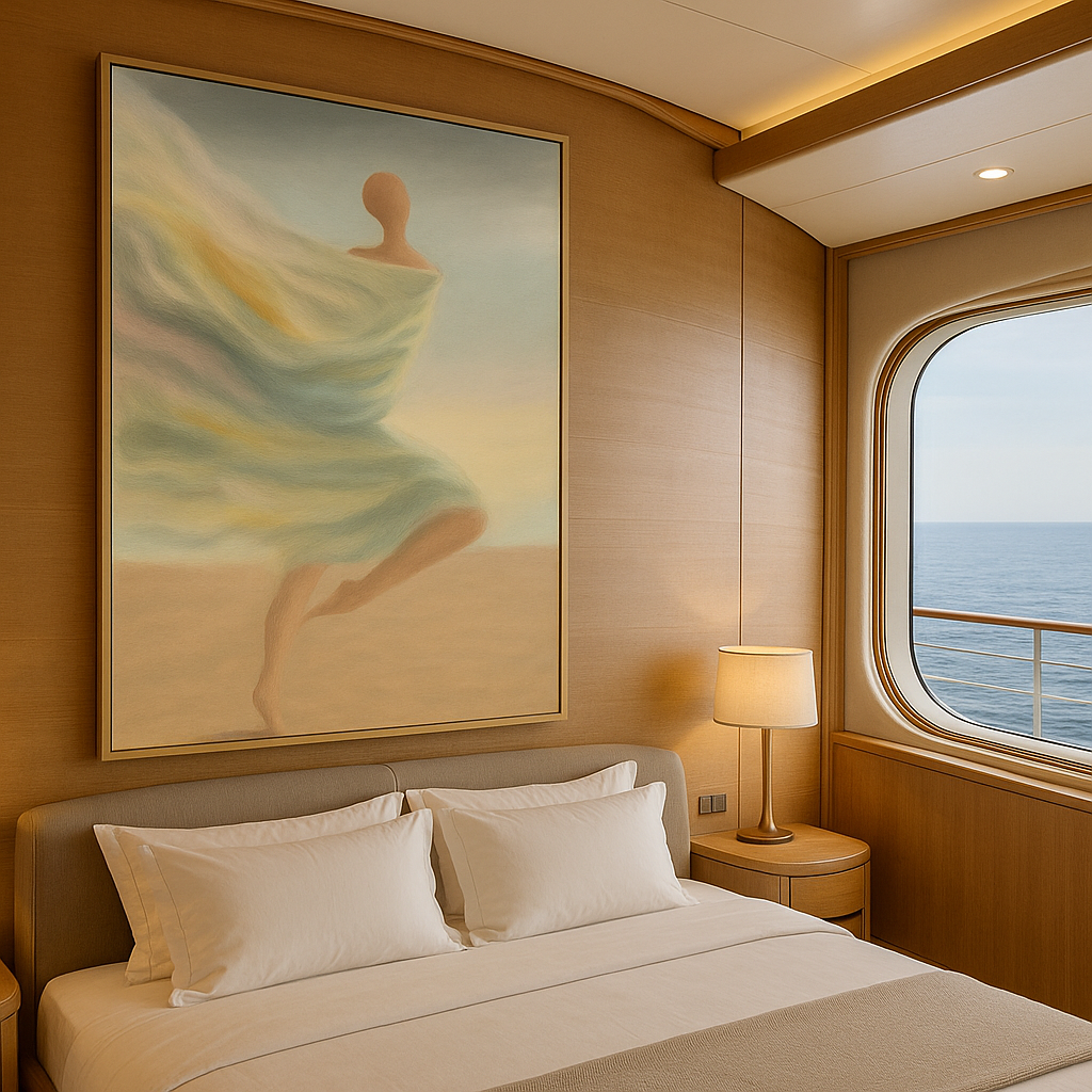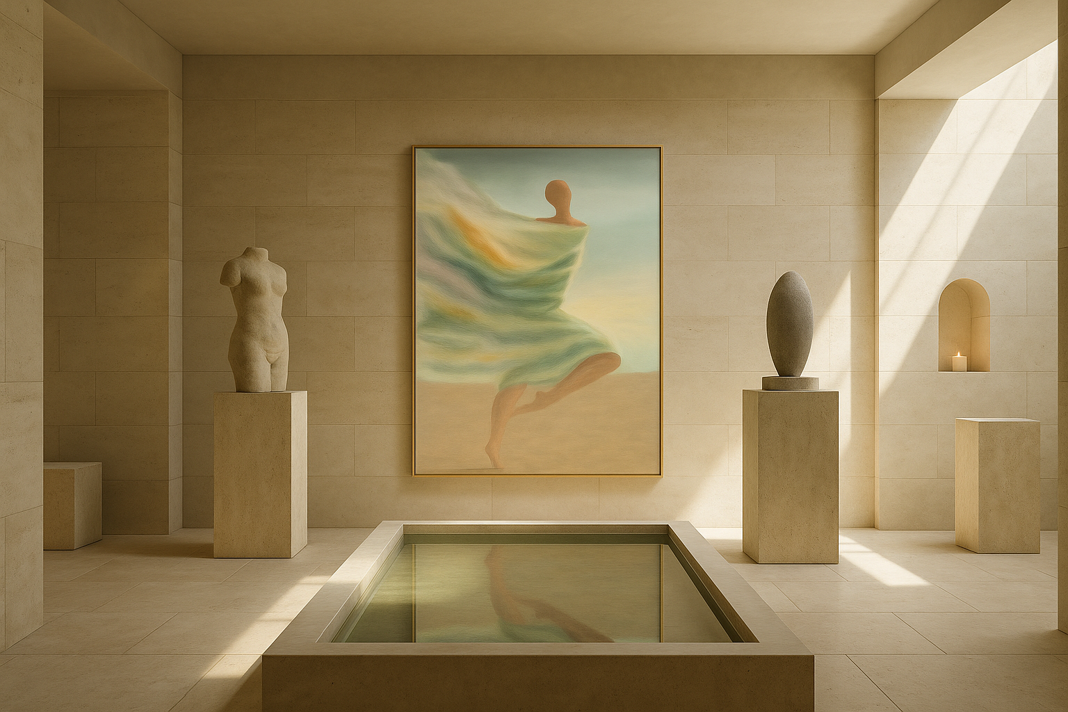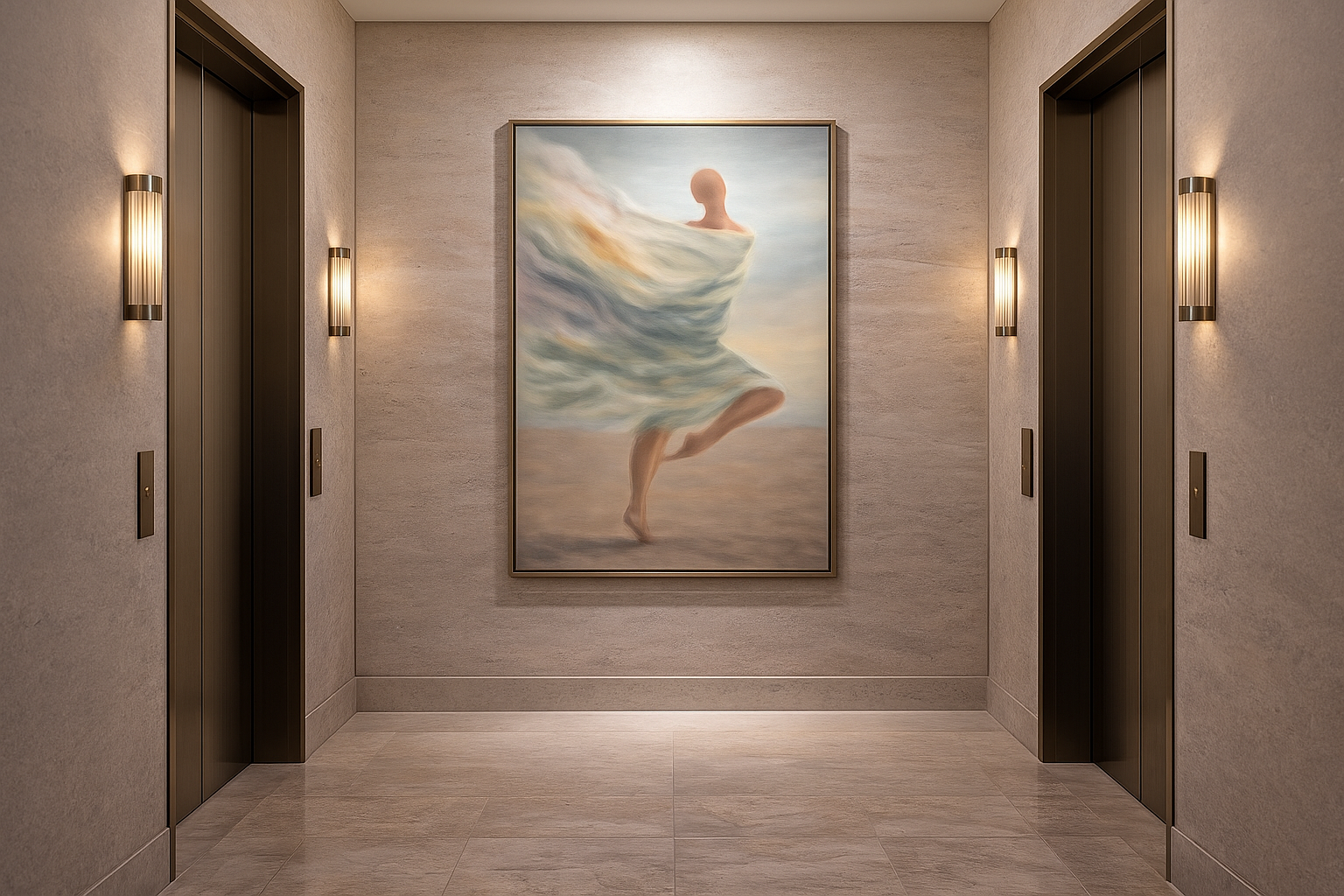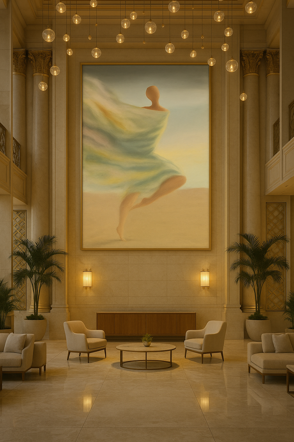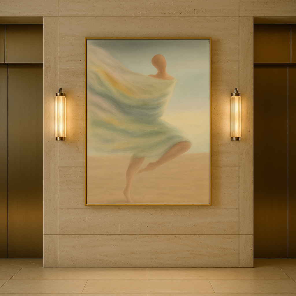 This artwork belongs in spaces designed for pause: luxury spa corridors, boutique hotel suites, private meditation salons, and serene residential galleries where calm is intentional and emotion is curated.