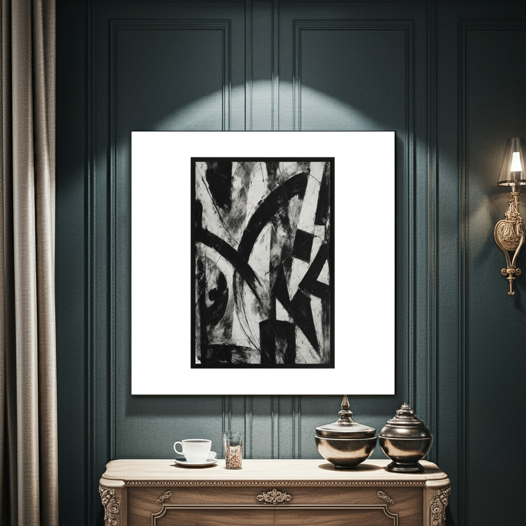 How to Style: “Where Chaos Meets Control: A Statement of Raw Power” is a commanding presence. Position it as the anchor of your space—above a minimalist sofa in a living room, at the head of a boardroom table, or in a grand entryway to make a powerful first impression. It thrives in environments with ample natural light, where the textures and nuances of the brushwork can be fully appreciated. Pair it with materials like polished marble, dark woods, and brushed brass to create a sophisticated, layered interior.