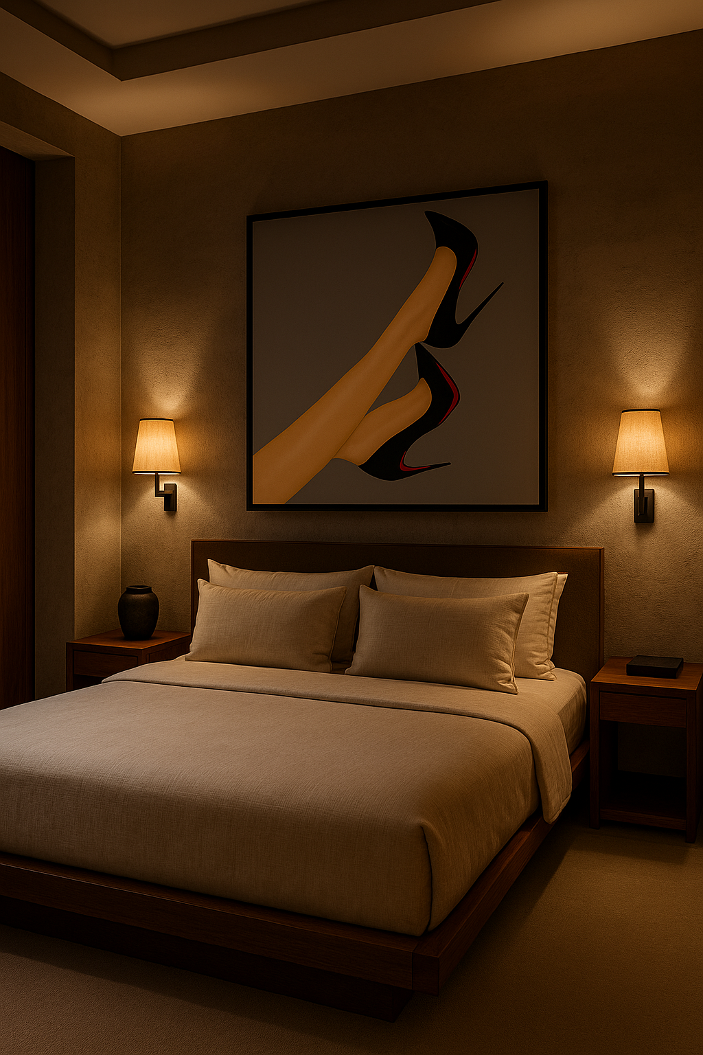 Velvet Descent was inspired by the moment just before an entrance is made—the pause, the poise, the certainty that follows. The heels do not walk; they command the room in advance.