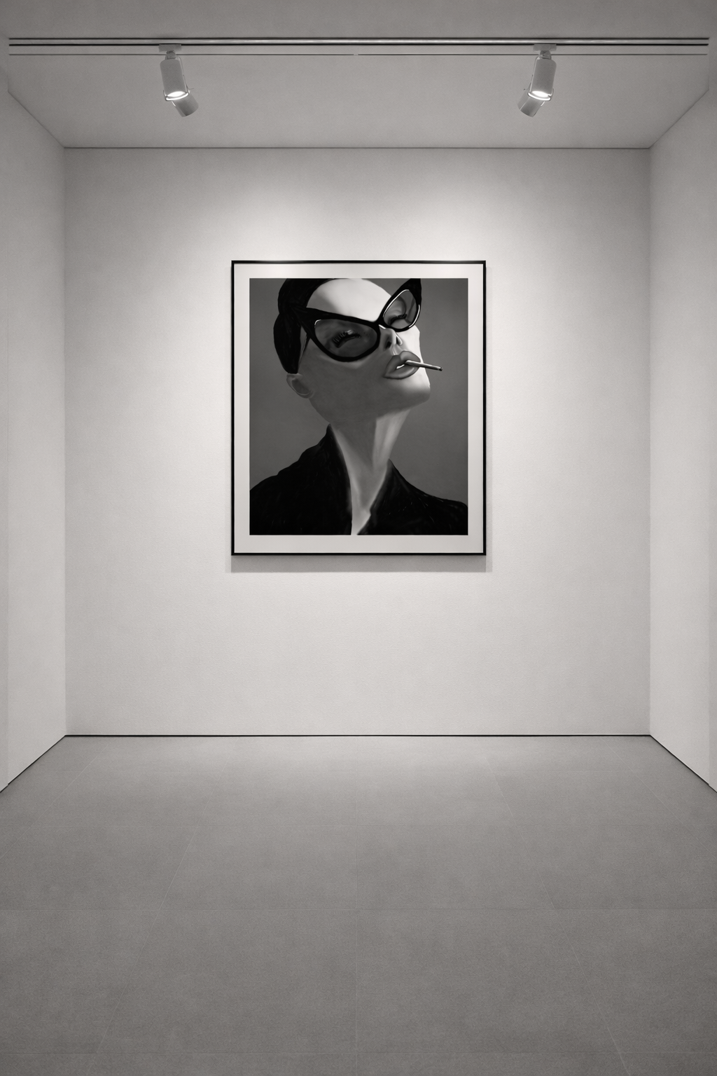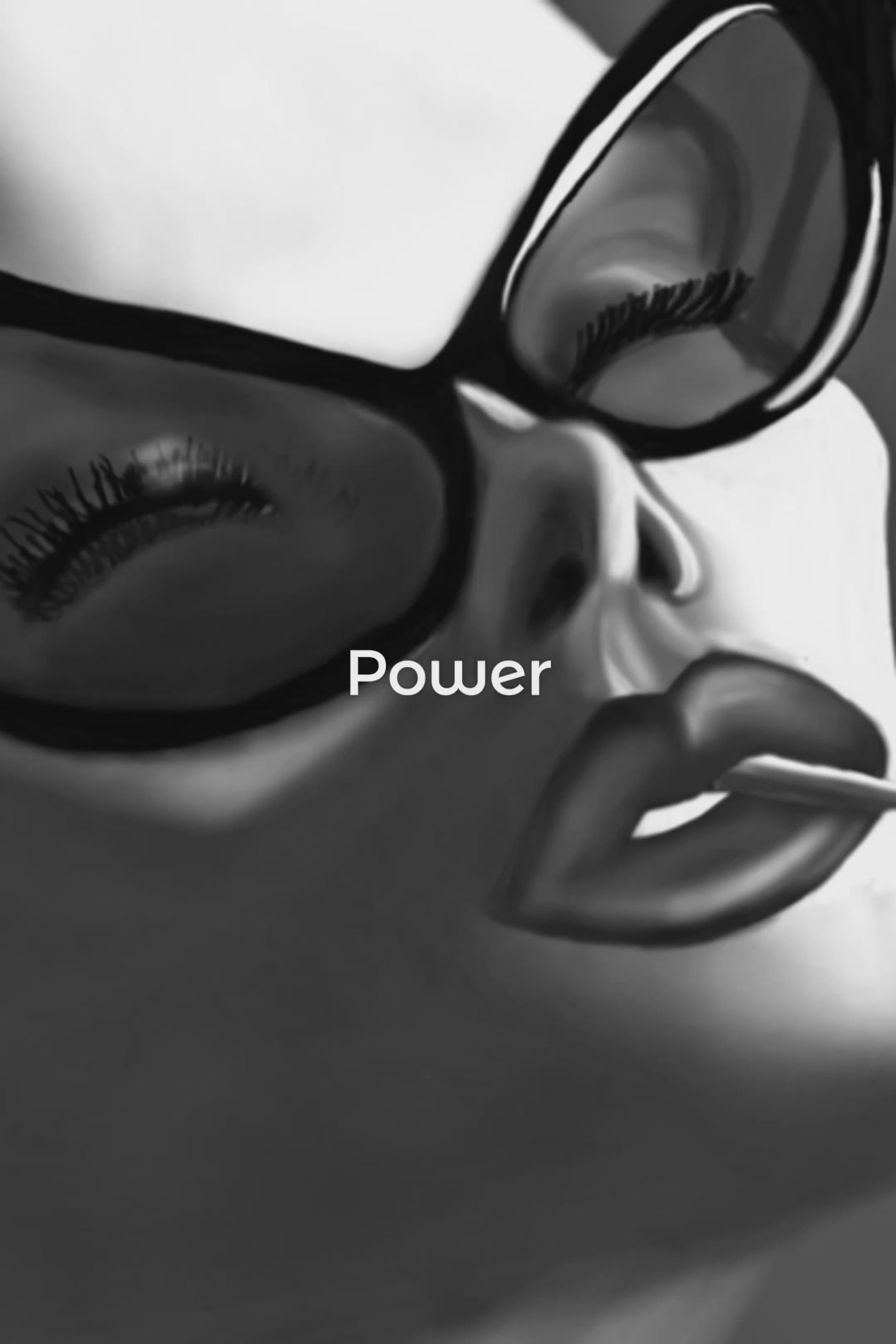 Velvet Vice captures the moment just before the rules bend. A sculpted profile emerges from shadow—eyes hidden behind oversized noir frames, lips parted with deliberate calm. The cigarette is not rebellion. It is control. This figure does not seek approval, permission, or understanding. She exists in full command of her own narrative.